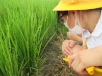 1学期に何度か稲の観察を行い、夏休みの間にグングン伸びた稲の様子を見て、