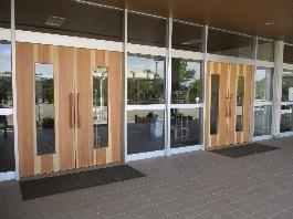 児童玄関の扉が新しくなりました!森林組合にお世話していただき,地元の木材を使用しています。明るくすっきりしたデザインの素敵な扉です。