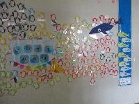 ライブラリー(学校図書館)前の「いのうえ氷の国」です。図書ボランティアの皆さんが子供たちの読書冊数を確認し,一人一人のペンギンを貼ってくださっています。住人(たくさん読んだ子)がどんどん増え,賑やかになってきました。お魚を持っているペンギンもいます。