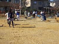 これまで十分使われてこなかった運動場西側の整備へのご協力をお願いしましたところ,午前中に練習をしていました井上ドラゴンズの子供たちも含め,約30名もの方が参加してくださいました。該当部分に砂を入れたり均したりしていただき,運動場をより広く使えるようになりました。本当にありがとうございます。