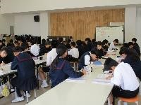 更に,税金の新たな使い道について考えました。「このようなことで困っているから,税金を使ってこうしたい」というアイディアをそれぞれが出し,用紙に書きました。このアイディアは2月に入ってシグナスに掲示され,「税の使いみち総選挙」と銘打ったイベントになります。