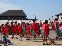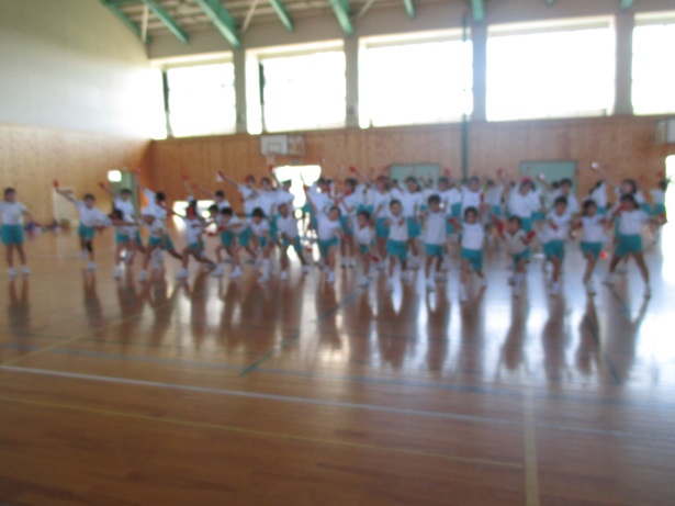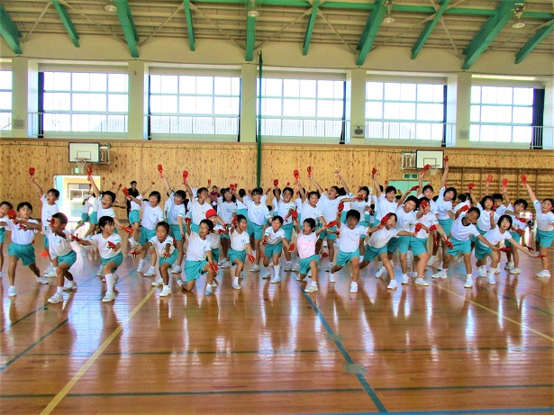 14日の運動会に向けて3・4年生はYOSAKOの練習をしています。これまでの練習で体を大きく使って踊ることができるようになりました。今日から,鳴子を手にしての仕上げの練習に入りました。