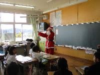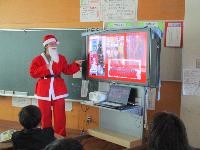 3年生・4年生の外国語活動の時間にサンタクロースが現れました。英語が大変上手で日本語もよく分かる素敵なサンタクロース,ALTのキョウコ先生サンタです。アメリカでのクリスマスの過ごし方を教えてくださったり,クリスマスに関係する言葉の練習をしてくださったりしました。キョウコ先生サンタのお陰で,一足先にクリスマスを味わいました。