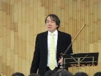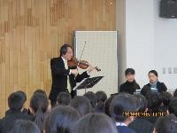 オーケストラ・アンサンブル金沢の第一ヴァイオリン奏者トロイ・グーギンズさんをお迎えし,演奏とお話を聴きました。インフルエンザ等の流行による学年閉鎖のために,12月のヴァイオリン演奏を聴くことができなかった3年生・5年生・6年生を対象とした演奏会です。現在プロとして活躍中のグーギンズさんのヴァイオリンの澄んだ音がランチルームに優しく響き,とても素敵な時間を過ごすことができました。作曲家や曲に関わるお話も伺うことができ,有意義な時間になりました。