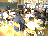 昼休みに,厨房から出火したという想定で避難訓練を行いました。今回は,子供たちと多くの職員に予告しない訓練でした(今週実施することは伝えてありました)。