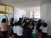 昼休みに,厨房から出火したという想定で避難訓練を行いました。今回は,子供たちと多くの職員に予告しない訓練でした(今週実施することは伝えてありました)。