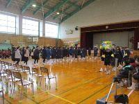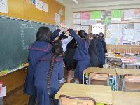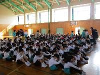 事前に指導されていることもあり,ほとんどの子は上手に防火扉を通ったり運動場から体育館(今回の避難集合場所)に走って入ってきたりしました。そして,「真剣に訓練できた人は」という問い掛けにほぼ全員が挙手しました。