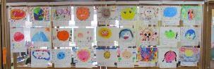 1年生が図工の時間にオリジナルの太陽を描きました。にこにこ笑っているような太陽,炎が燃え盛っているような太陽,怒っているような太陽,とってもカラフルな太陽などなど,一人一人が自分の太陽をデザインしました。1年生のワークスペース(廊下)には51個の太陽がさんさんと輝き,明るくなりました。