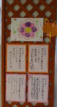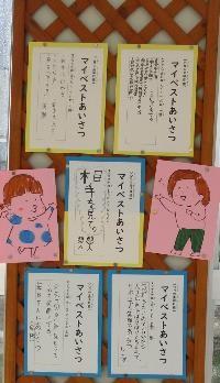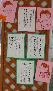 6月の生活目標は,「マイベストあいさつ」です。今月初め,この目標を達成するために,各学級で頑張ることを話し合いました。更に,そのために自分はどのような挨拶をするのかを子供たち一人一人が考えました。