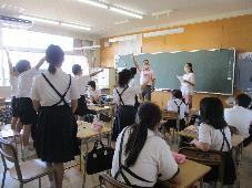 ①外国語科では,本来,学習したフレーズを身に付けるために,子供たちが向き合って会話する活動を中心に行います。しかし,今,子供たちは黒板の方を向き,担任やALTとの対話を中心に学習しています。