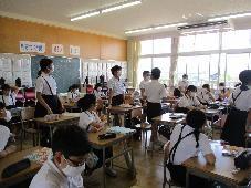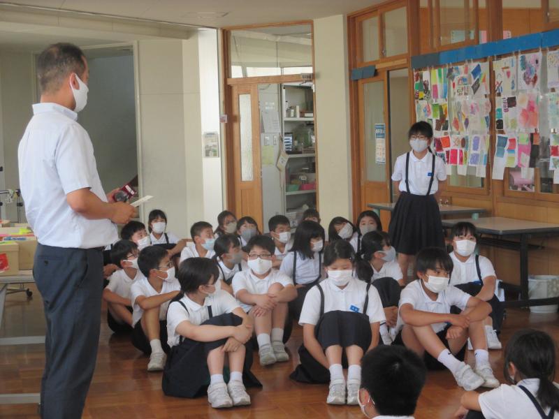 今日,3年生の理科の時間に6年生が招かれ,バッタの話をしました。昆虫を始め生き物について大変詳しい6年生で,バッタの飼い方や環境づくりのコツを教えてくれました。また,3年生の質問にもすぐに答えていました。3年生の子供たちは,虫かごと6年生の顔を見ながらしっかり聞いていました。3年生からバッタ博士が誕生するかもしれません。