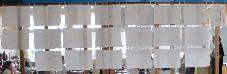 先日の1年生と同様に,他の学年も図工や国語,書写の作品が完成し,ワークスペースに向けて掲示されています。2年生は図工「ひみつのたまご」,3年生も図工「絵のぐ+水+ふで=いいかんじ!」,4年生も図工「絵の具でゆめもよう」,5年生は国語「きいて,きいて,きいてみよう」(級友に聞いたことの報告書),6年生は書写「快晴」です。