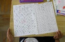 26日(金)の朝自習は「井上っ子作文」でした。前の週に子供たちが書いた文章を担任が見,修正部分に印などを付けて返しました。子供たちはそれを見て丁寧な文字で清書していました。