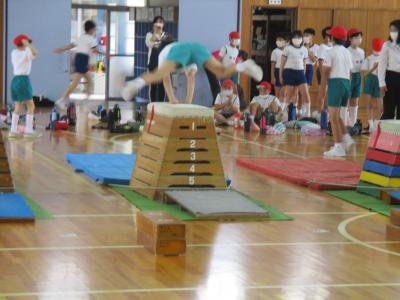 今日は器械運動交歓会の本番でした。子どもたちはこれまでの練習以上の技を目指して今日の本番に臨みました。