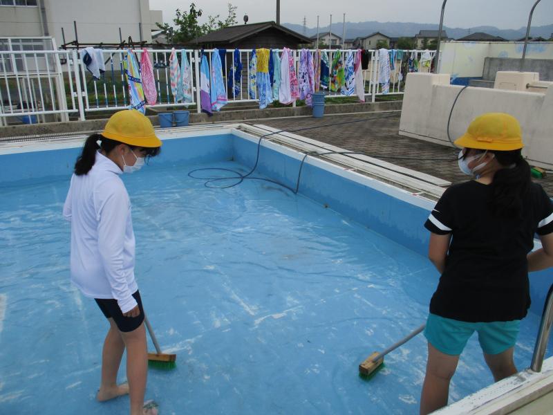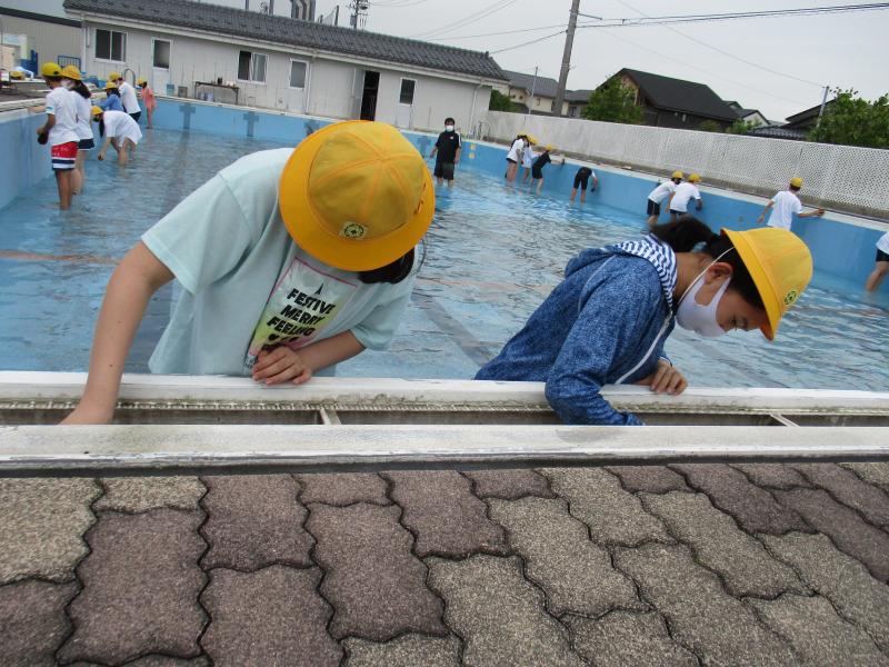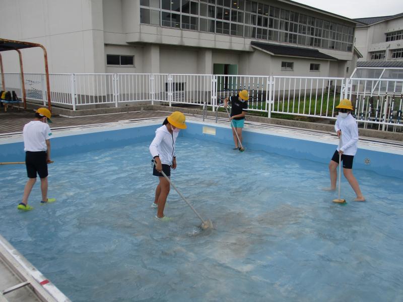 6月22日(水曜日)、6年生でプールの掃除を行いました。