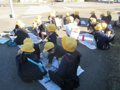 子どもたちは、「これは何だろう。」「郵便局の車があったよ!」など、町を見渡しながらいろいろなものを見つけていました。