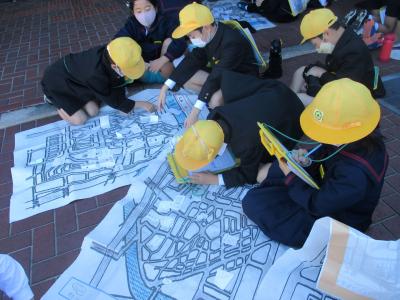 マップに見つけたものを描きこんだり、写真を撮ったりして、グループのみんなで協力し合いながら頑張っていました。
