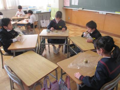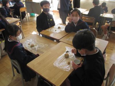みんなで頑張って育てたお芋を、茶巾絞りにして食べました!