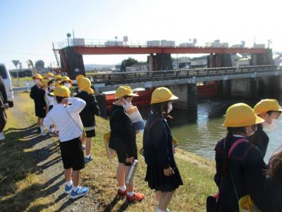 水門を見に行き、川の高さが違う!と大発見もありました。