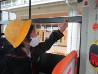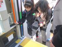 整理券をとる、降車ボタンを押す、お金を払うなど、一人一人体験をさせてもらいました。また、車いすのまま乗車できることも教えていただきました。町中をドライブし、普段あまりバスに乗ることがない児童たちは、「楽しかった~」「また乗りたい」と喜んでいました。