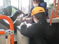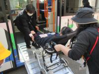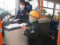 津幡町役場職員の方から、バスの乗降の仕方について、体験を交えて教えていただきました。