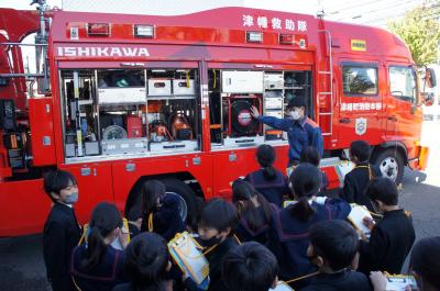3年生は社会科の学習で10月に津幡町消防本部、11月に津幡町警察署へ行きました。