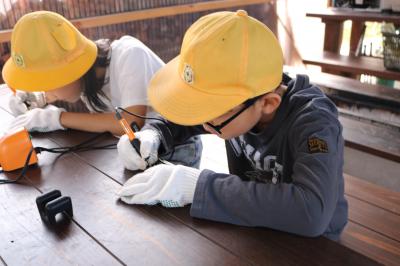 10月18日金曜日、秋晴れの中、4年生たちはキンシューレにてふるさと体験学習をしました。