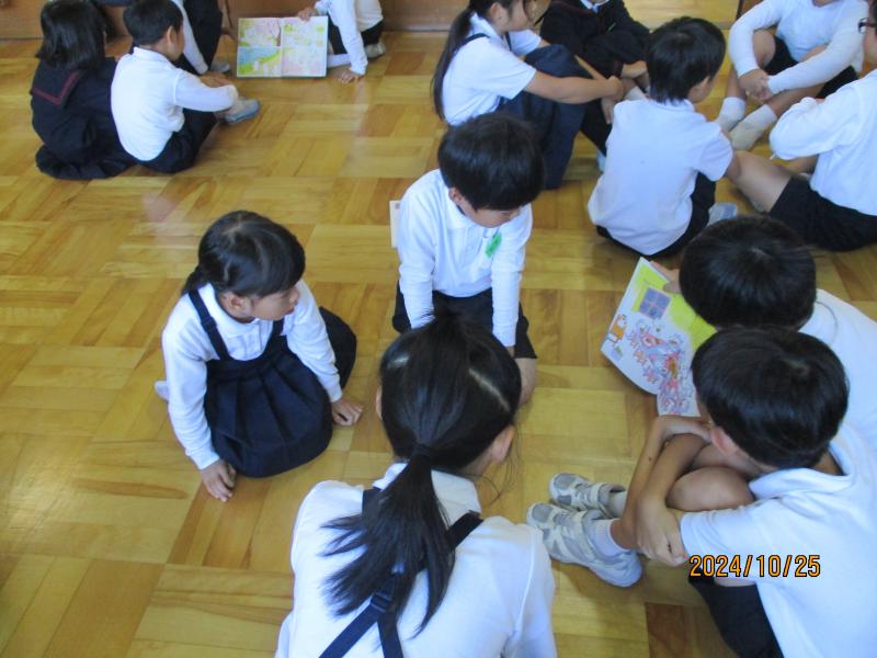 3年生は国語の時間に1年生におすすめの1冊を話し合いで決める学習活動をしました。そして、話し合いで決めた1さつをなかよしグループの1年生に読み聞かせをして紹介しました。3年生の読み聞かせを1年生は楽しそうに聞いていました。