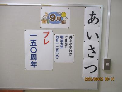 1日(月)から始まった2学期ですが、始業式は放送で行い、2学期がんばってほしいことと、150周年のことを話しました。149周年の今年は、前の年ということで、地域や学校の周りのことを学習に取り入れてほしいと話しました。これから始まる2学期が、実り多い学期になるといいと思っています。