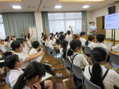 まだまだ暑い体育館でしたが、1日放課後に体育実技の講習会をしました。柔軟性を高めるための運動や、方向転換走と呼ばれる種目の講習をしました。早速次の日には、2年生、4年生の子供たちがチャレンジしていました。