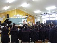 バイオリン奏者の横山友美さんをお迎えして鑑賞会を行いました。2限目は2年生と4年1組が,3限目は1年生と4年2組がバイオリンの音色を楽しみました。小さな楽器から大きな音や澄んだ音が流れ出し,子供たちは珍しそうに聴いていました。最後にはバイオリンとピアノの伴奏で今月の歌を歌いました。