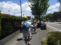その後,校門を出て学校の周りをルールに則って歩きました。