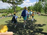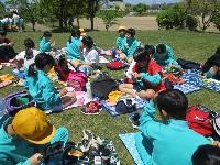 公園では,班でまとまってお弁当を食べたり6年生が考えて