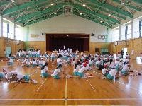 4限目に,3年生から6年生までが体育館に集まり,体力テストを