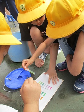 津幡川の水の汚れ具合や液性についても調べ、自分たちに