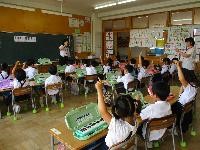 にごみ捨ての方法を教えている6年生など,頑張る姿があち
