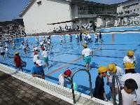 プール開きをしました。湿度は高かったのですが,水温や上がった