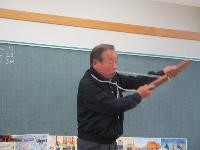 3年生が総合的な学習の時間「井上の〇〇名人を探せ!」にて,「川尻ちょんがり」に大変お詳しい中島さんと田賀さんをお招きしました。中島さんには,歴史,楽器とリズム,踊りと楽器の動きなど多くを教えていただきました。田賀さんには,歌の旋律やリズムを教えていただき,何度も歌っていただきました。お二人揃って歌に合わせて拍子木と太鼓を打ちながら動くお姿には,子供たちも釘付けになりました。
