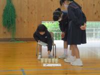秋のものを使ったおもちゃを作り、2年生と6年生を招待しました。