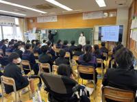 24日の3限には,津幡南中の茶谷先生に来ていただき,中学校生活についてお話をしていただきました。小学校と中学校との違い,中学校生活で大切にしていくことを学び,3学期に自分たちがつけていきたい力について考える機会になりました。