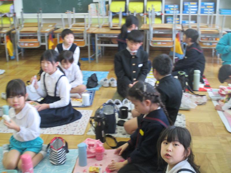 1~3年生は友達とお弁当を食べるのが初めての体験となりました。