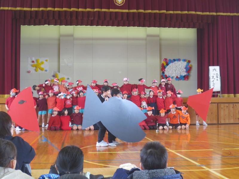 各学年、創意工夫を凝らした劇や歌、合奏など、いろいろな伝え方で6年生に感謝の気持ちを伝えていました。