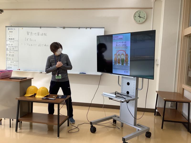 地震と火災の避難訓練を行いました。消防士の福井さんから、火災発生時の対応の仕方や水消火器の使い方等を教わりました。(2025.11.19)