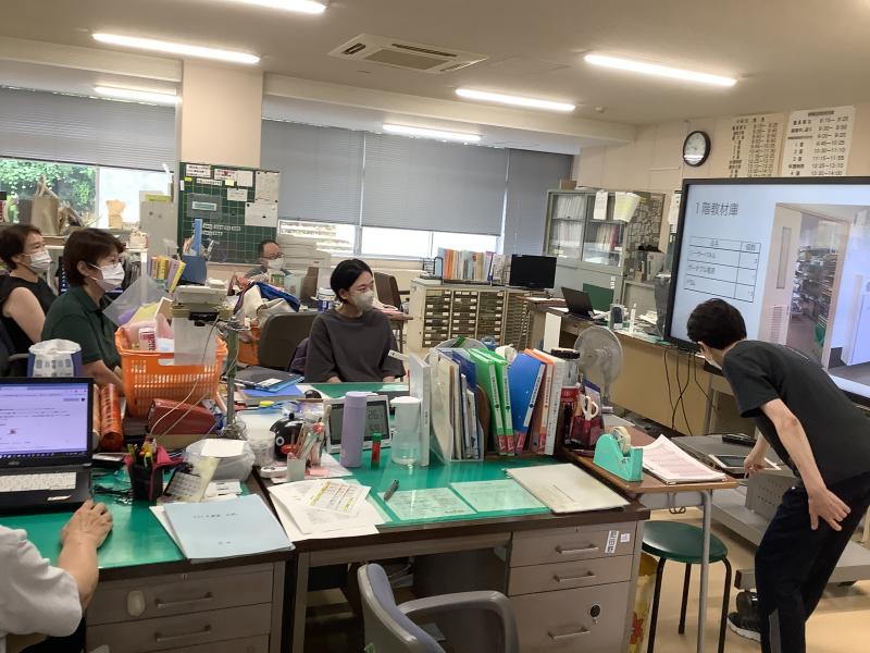 〇防災備品確認研修会を行いました。本校にある防災備品について保管場所、使用方法、数量などを教職員で確認しました。今後必要な備品等について配置を検討していく予定です。(2025.8.6)