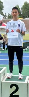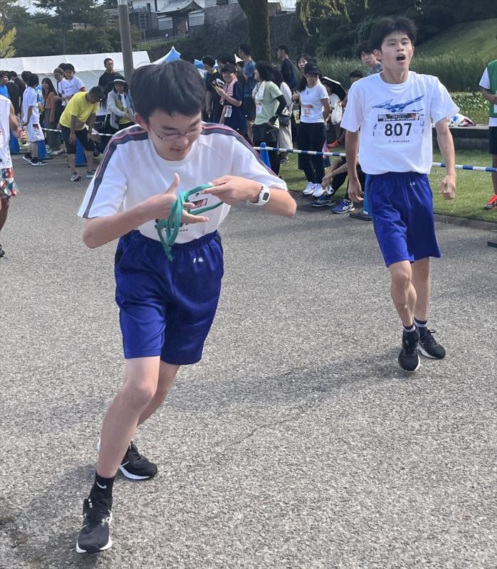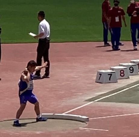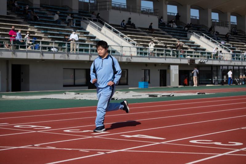男子800mに中村さんが初挑戦しました。1周目は集団の勢いに合わせてスタートしました。ラスト1周の鐘がなり、体が動かなくなってきた中でも腕を一生懸命振って最後まで走り抜けました。練習で一度走った時のタイムを大幅に更新することができました。走る前は初めて挑戦する800mに不安な様子もありましたが、ゴール後には、やり切った達成感で笑顔になり、もう一度挑戦したいと力強く話していました。