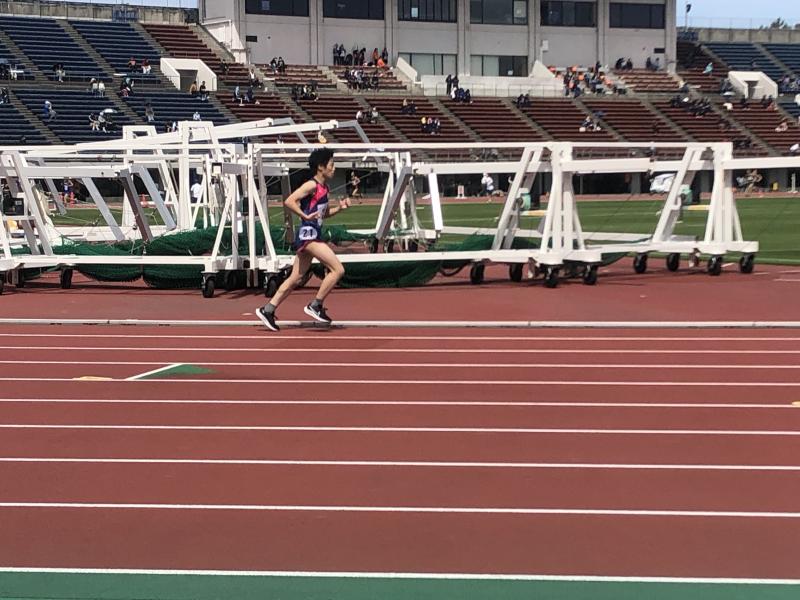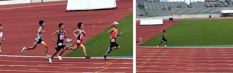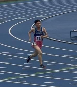 続いて男子5000mにも北島さんが出場しました。1時前で気温も上がり暑い中でのレースとなりました。スタートし、1000m過ぎから少しずつ集団から離れてきた選手を抜かしながら粘り強く走り、3000mから4000m過ぎの1番辛いところでも1周あたりのタイムが1秒ずつしか落ちませんでした。ラスト1000mでは徐々にペースを上げて走り抜き、初日に1500mを走り、同じ日に5000m競歩に出場し疲れが残った状況かつ暑い中でも自己ベストを更新することができました。