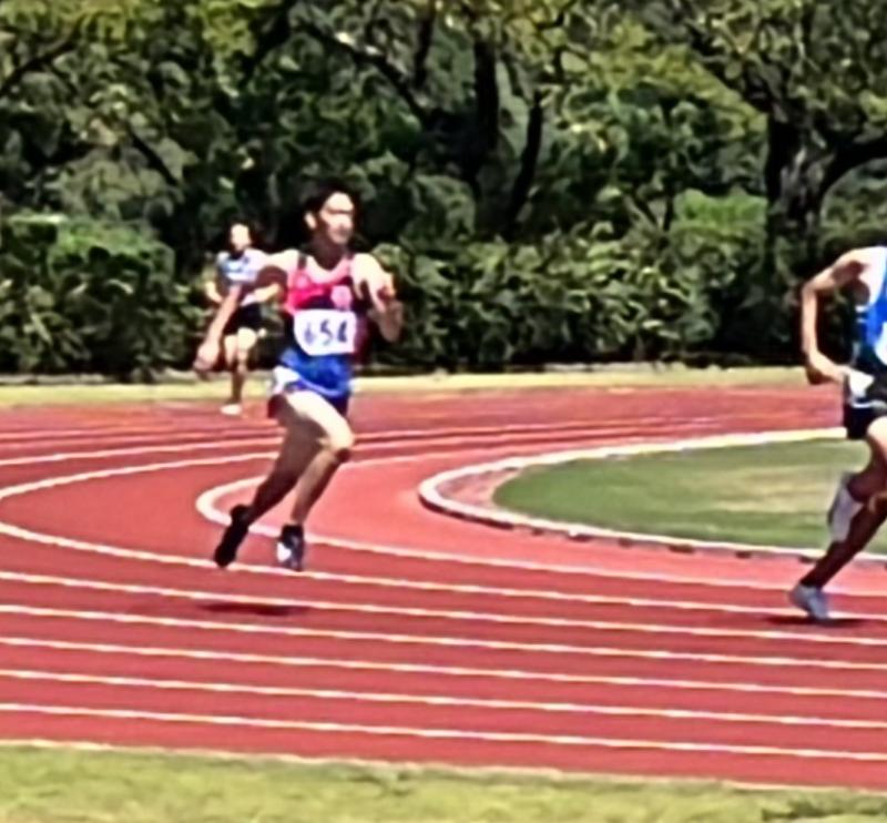 男子400mでは、三宅さんが出場し自己ベストを更新することができました。200mまでの勢いと後半のきつくなってからの走りが力強くなりました。
