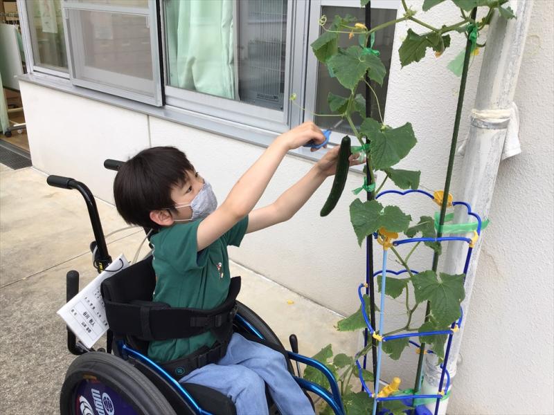 生活単元学習「きゅうりの収穫」