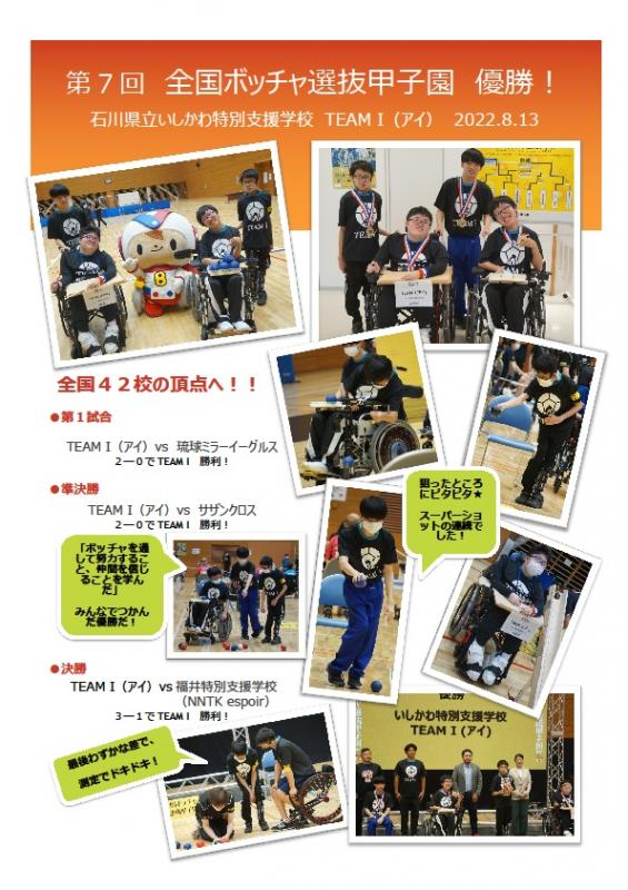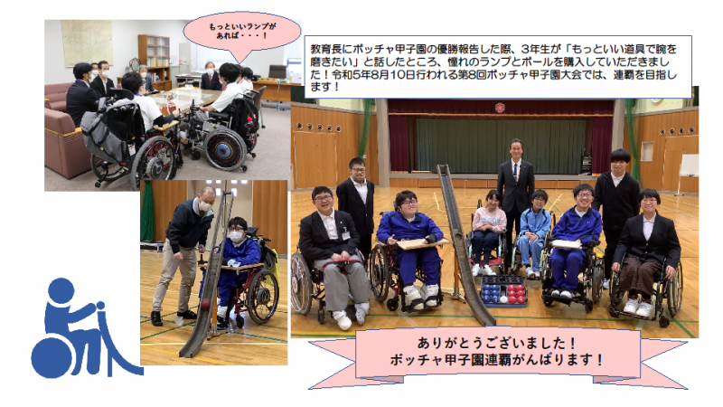 〇 全国ボッチャ選抜甲子園にて本校ボッチャ部が準優勝したことを報告