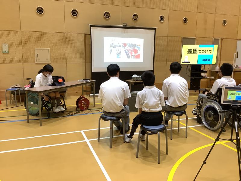 一覧へ 実習生を励ます会 投稿日時: 2023/10/23 サクラ 肢体不自由教育部門高等部では、10月16日(月)から後期の職場実習が始まりました。3年生にとっては、卒業後の進路に向けた「まとめ」の実習ということもあり、生徒一人一人が実習に向けて真剣に目標を立てました。 10月2日(月)に行った実習生を励ます会では、自分で決めた目標を一人ずつ発表しました。1年生からは激励の言葉もあり、後期の職場実習に向けて、気持ちを高めることができました。